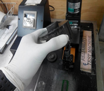 Kepala rubber perlu diratakan dengan menggunakan emery cloth / kertas pasir sebelum setiap kali test.